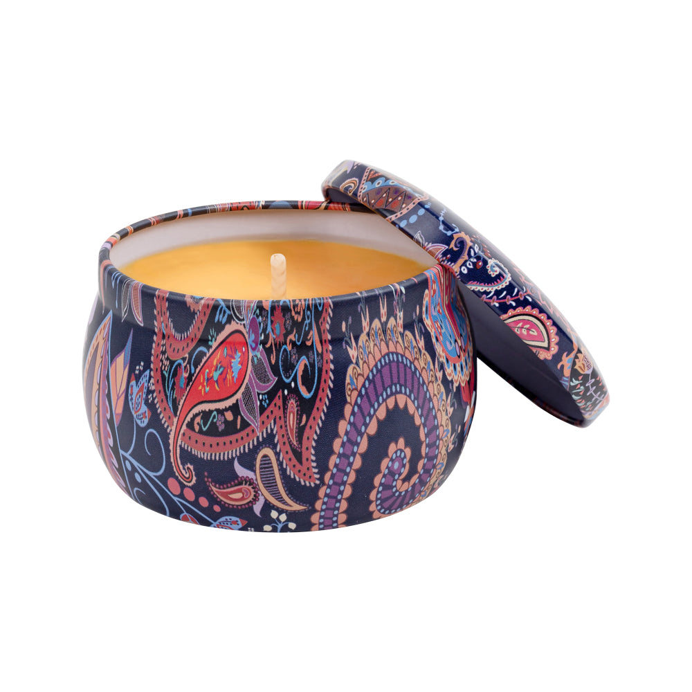 Sol Candles Candle Tin Black Orange Blue Tropical Burst